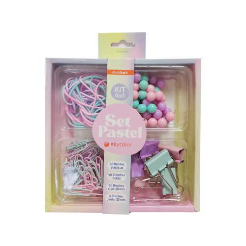 SET SKYCOLOR PASTEL 4X1 BANDAS/CH.BOLIT/CLIP/BIND