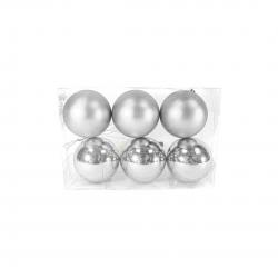 GLOBO NAVIDAD 4CM 3BRILL/3SATIN PLATA CAJ*6 51201